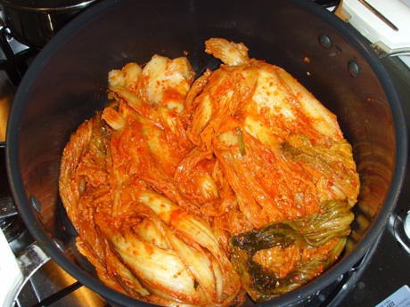 김치속은 대충 털고 냄비에 넣습니다. (포기 김치를 사용하셔야 합니다)